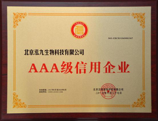 正是凭借这种高标准、严要求的生产,零差评的信誉指数,以及极强的经营稳定性,泓九生物在此次评选中,获得了“AAA级信用企业”最高等级殊荣。