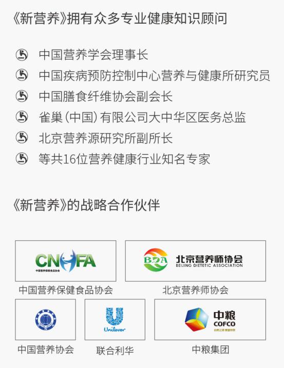 《新营养》杂志以新锐的态度和务实的精神,致力于以“营养、健康、美味”的方式,向世人揭开食物背后的秘密。多年来对互联网思维的借鉴以及对垂直化思维的坚守,《新营养》聚拢了大量的优势资源,在健康行业内拥有巨大的影响力和传播度。